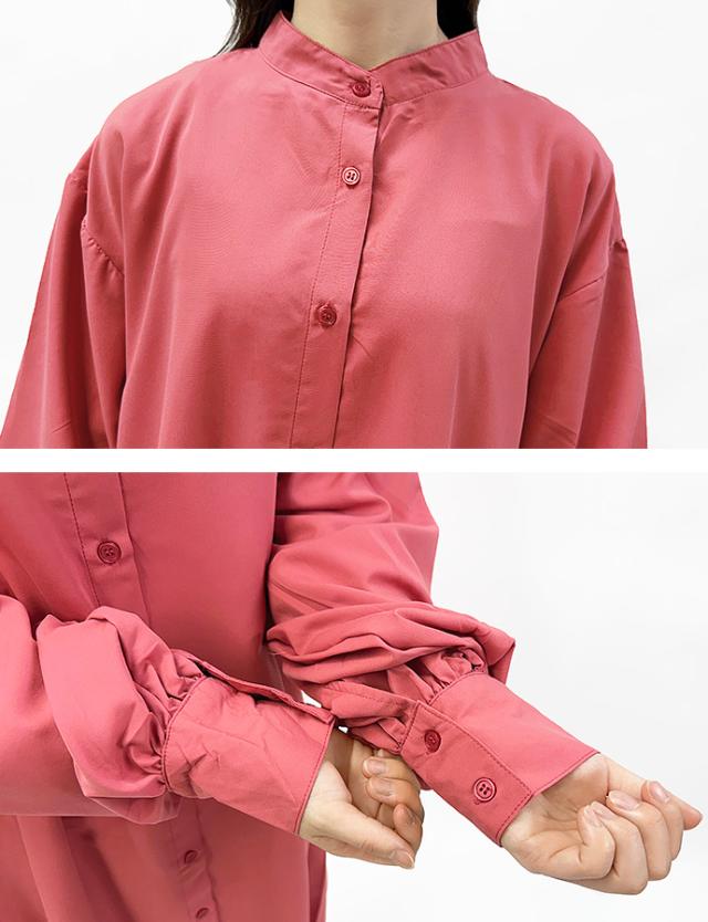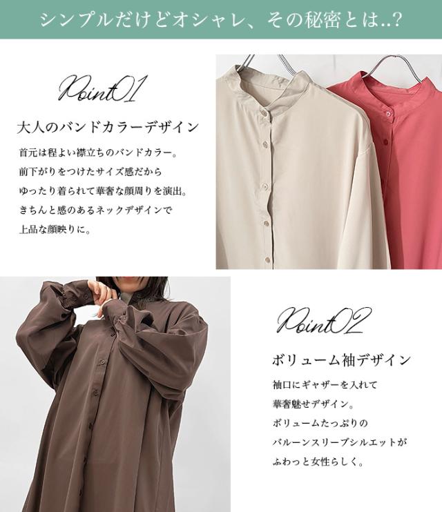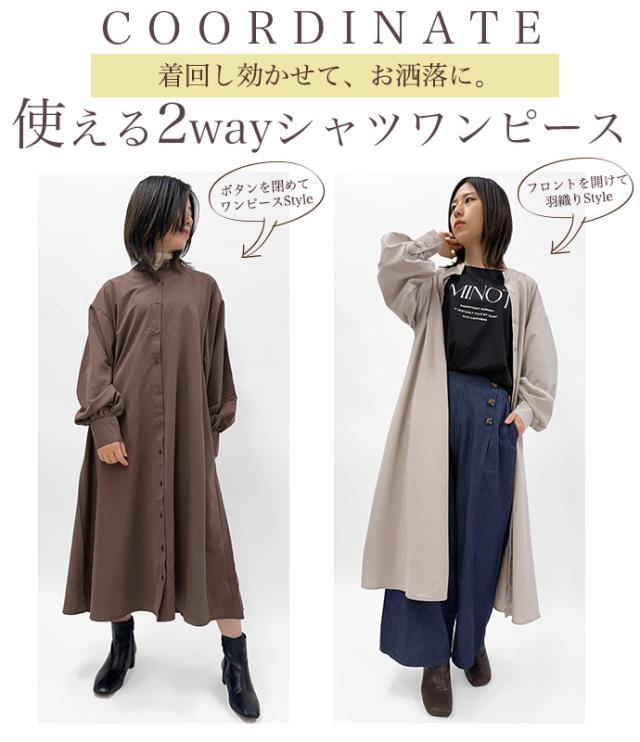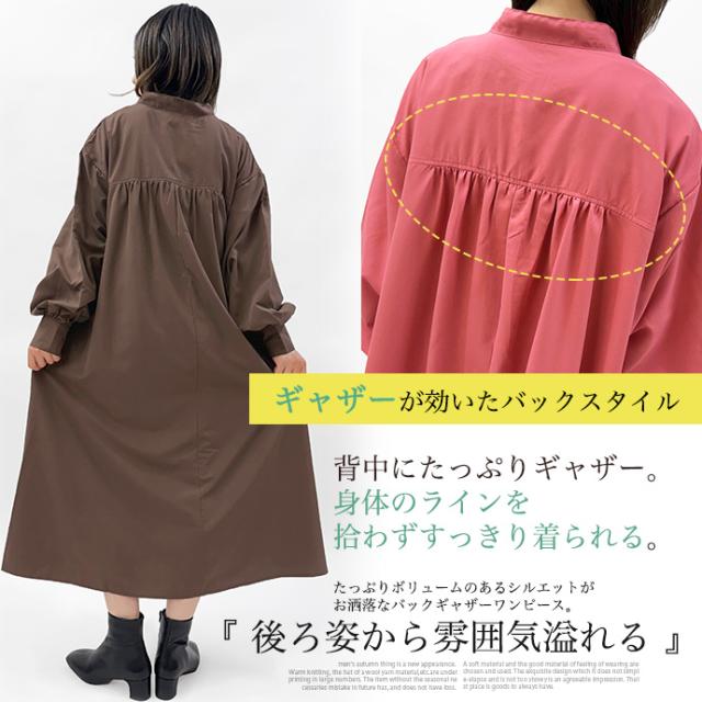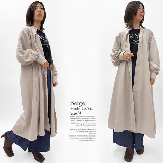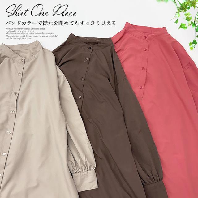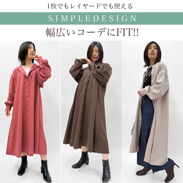 ワンピース ロングワンピース シャツワンピース フレアワンピース 羽織り ロング丈 バルーン袖 バルーンスリーブ ぽわん袖 長袖 バンドカラー ゆったり Aライン 無地 シンプル レディース送料無料