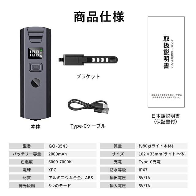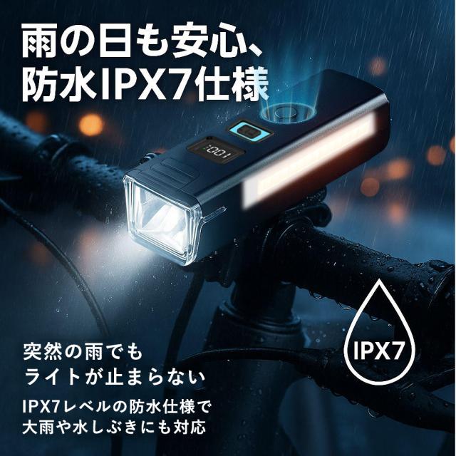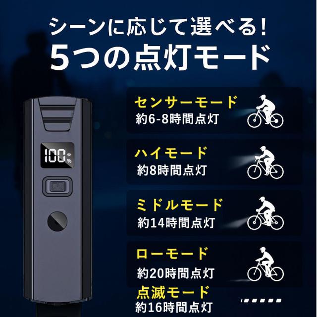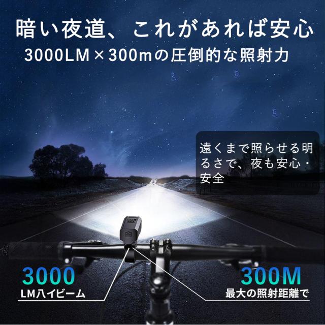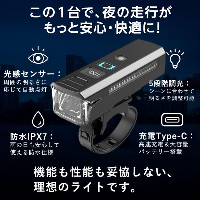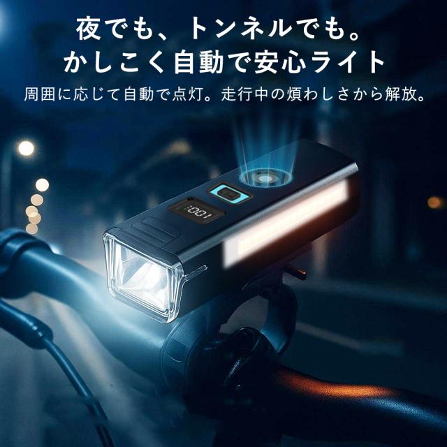 自転車ライト 充電式 3000lm 高輝度 小型 感光センサー 自動点灯 サイドライト 防水 防眩 残量表示 led 自転車用ライト テールライト 子供 通学 通勤 明るい