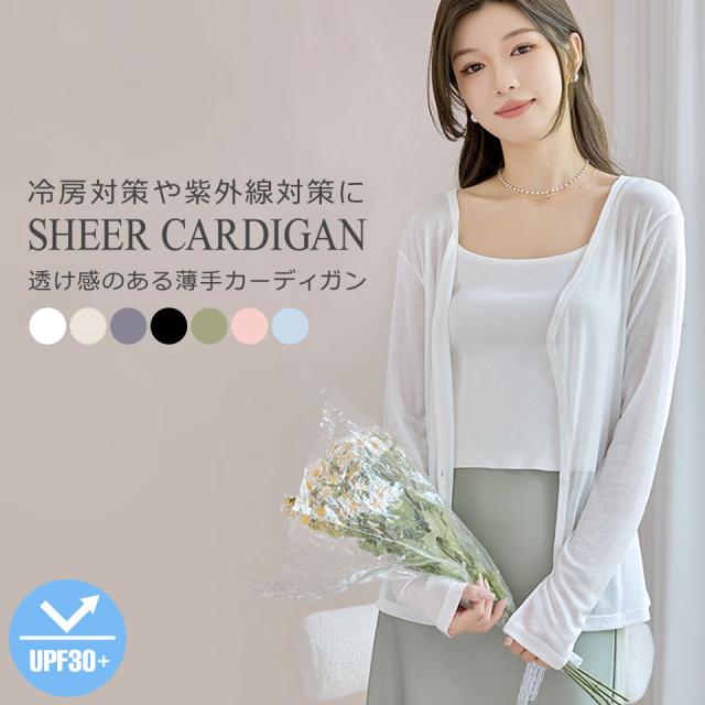 カーディガン レディース 薄手 UVカット 春夏 夏 涼しい Vネック 長袖 シアートップス サマーカーディガン サマーニット シアーカーディガン ニット 無地 ホワイト ブラック グレー グリーン ピンク ブルー 羽織り 肩掛け 紫外線対策 日焼け対策 冷房対策 通勤 通学 y6