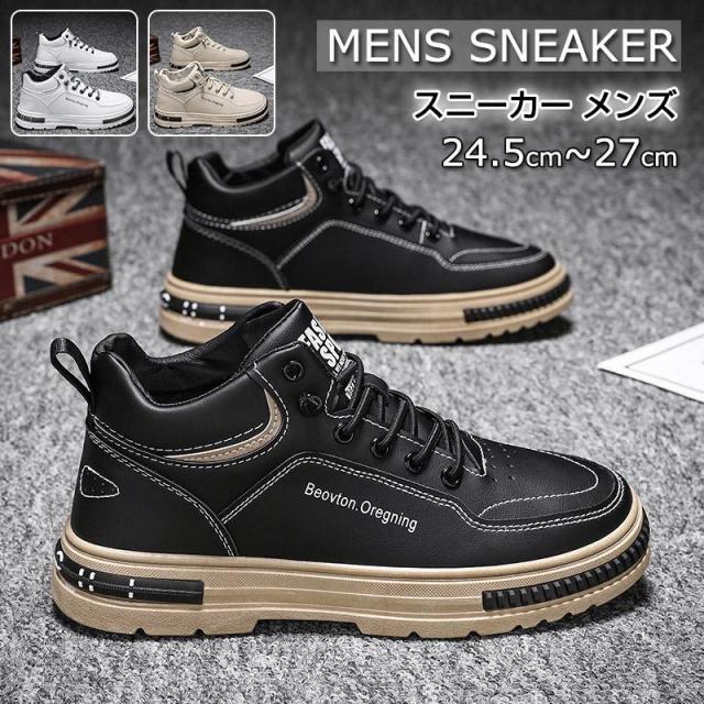 スニーカー メンズ 革靴 スニーカー ハイカット シューズ フラットシューズ 紐靴 歩きやすい 通勤 通学 お出かけ カジュアルスポーツ おしゃれ ミドルカット