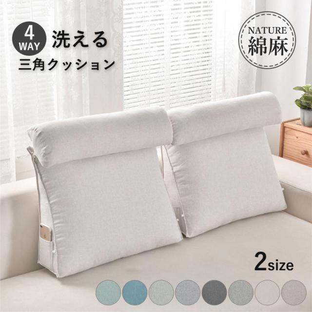 4WAY 背もたれ クッション 三角クッション ソファー ミニクッション付きハイバック 背中 うつぶせ 三角枕 ベッドクッション 腰当て 背当て ごろ寝 お昼寝 読書