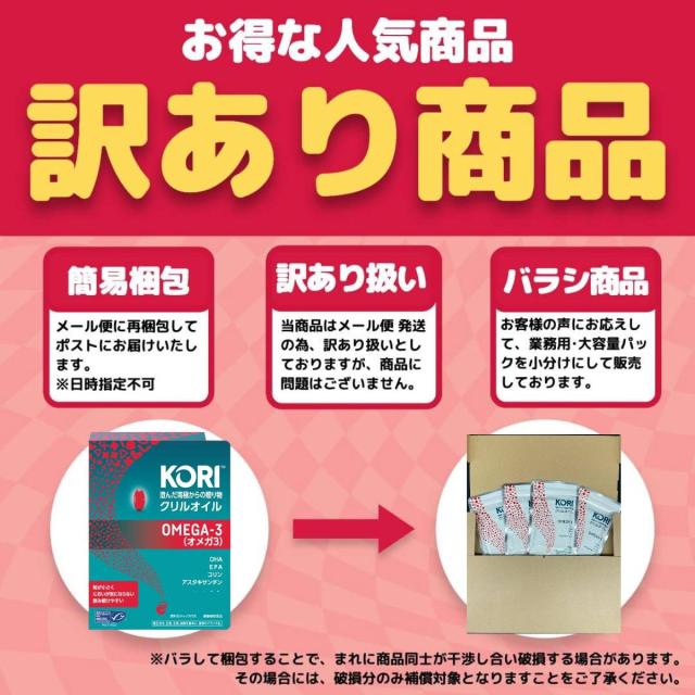 | その他 | ・クリル(krill)とはプランクトン「オキアミ」を意味する英語です。世界中の海では数十種類のオキアミが生息しています。 ・その中でも、自然豊かで澄んだ南極海に生息する南極オキアミは海洋資源として重要視されています。この南極オキアミから抽出・精製された天然の油がクリルオイルです。 ・クリルオイルには、DHA・EPA(オメガ3)のほかにコリンとリン脂質が含まれています。日本では、オメガ3が最も認知されている栄養素です。 ・魚油より多くの栄養素を含み、生臭くない後味がないことが特徴です。 ・北米で製造されているサプリメントより、日本人が飲みやすいように小さなサイズのサプリメントに設計しています。 ・粒の赤色は、クリルオイル由来のアスタキサンチン(色素)によるものです。 |