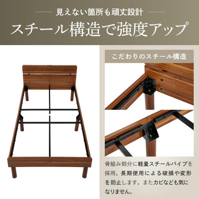 驚異の強度を誇る高耐久スチールを受桟に採用!圧倒的な頑丈さで、たわみや劣化とは無縁。長年使ってもビクともしない安定感。さらに、木製よりも湿気・カビに強く、常に清潔&快適な睡眠環境を実現!