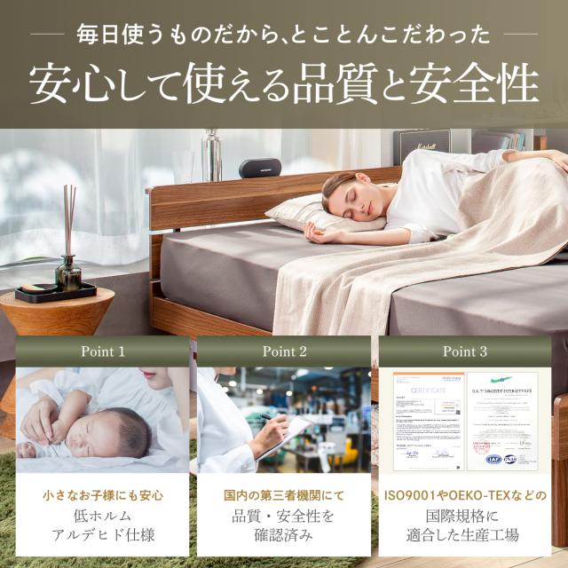 ベッドの受桟には高強度スチールを使用しており、たわみや劣化が少ないため、長くお使いいただけます。さらに湿気やカビに強いため、いつでも清潔。