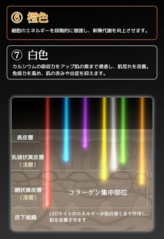 光治療技術は、肌の問題の光治療のために異なる波長を持つ7色のLEDライトを組み合わせて、若々しい外観を取り戻すのに役立ちます。