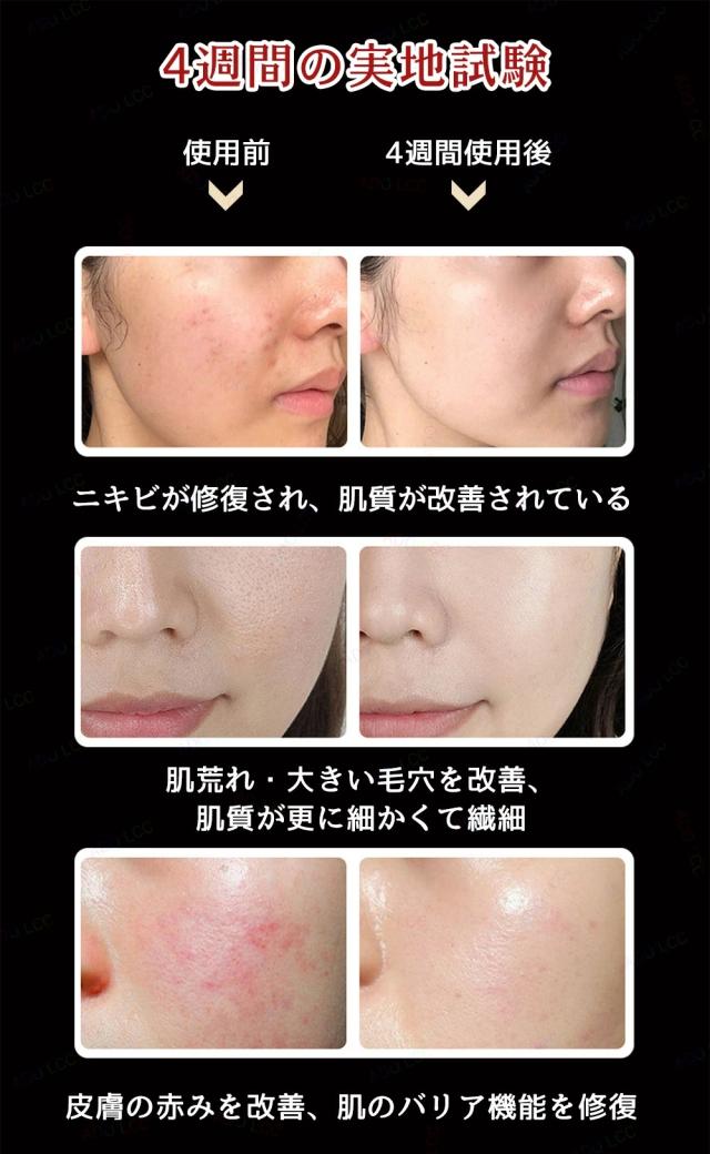 ・色素沈着を軽減し、シミを取り除き、皮膚を修復し、栄養を深めます。 肌の若返り、小じわ、黒い斑点の除去を減らし、肌の弾力性を高め、毛穴を縮小し、肌を深くきれいにします。