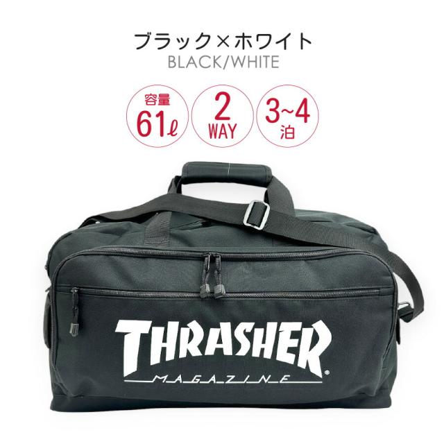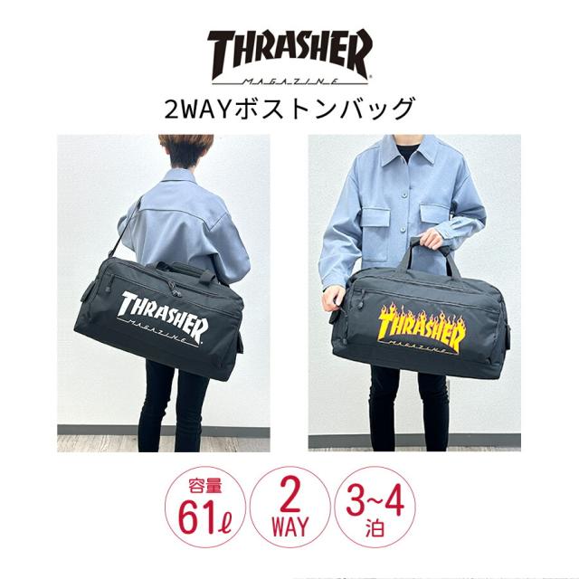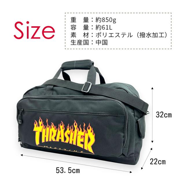 ボストンバッグ 修学旅行 男子 61L 大容量 3泊4日 75117 THRASHER プリントロゴ ファイヤーロゴ ボストンバッグ 大きい 大型 撥水加工 かっこいい クール メンズ 男性 ジュニア 小学生 中学生 高校生 大学生 大人 林間学校 宿泊学習 合宿 研修 出張 旅行 キャンプ