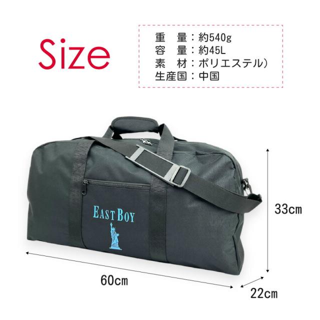 ボストンバッグ 修学旅行 小学生 女の子 45L 大容量 2泊3日 ブランド ebb-0562 EASTBOY イーストボーイ トラベルボストン 大きめ 大型 ロゴ おしゃれ こども レディース 女子 ジュニア 小学生 中学生 高校生 子供 バッグ 林間学校 宿泊学習 合宿 研修 旅行 家族旅行 キャンプ