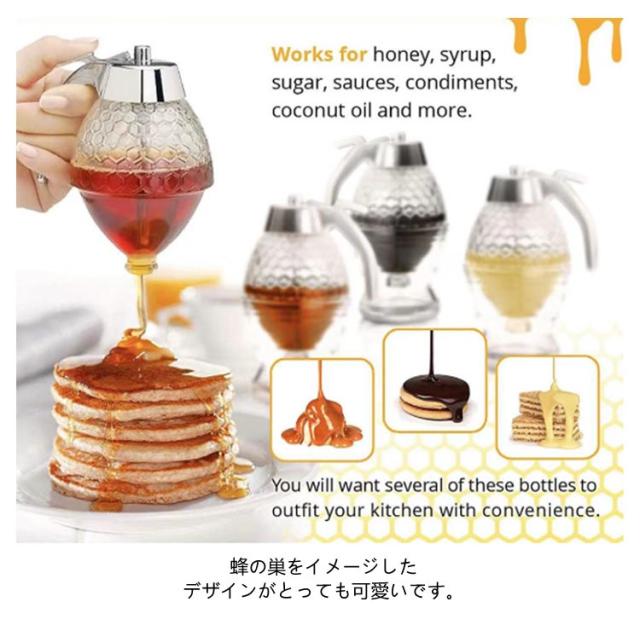 ハニーディスペンサー はちみつポット ハニーポット ハチミツ入れ メイプルシロップ入れ 蜂蜜 調理用具 おしゃれ シンプル 片手 簡単 便利 インテリア 雑貨 定番 可愛い トースト パンケーキ カフェ 衛生的 清潔 家庭用 ギフト プレゼント