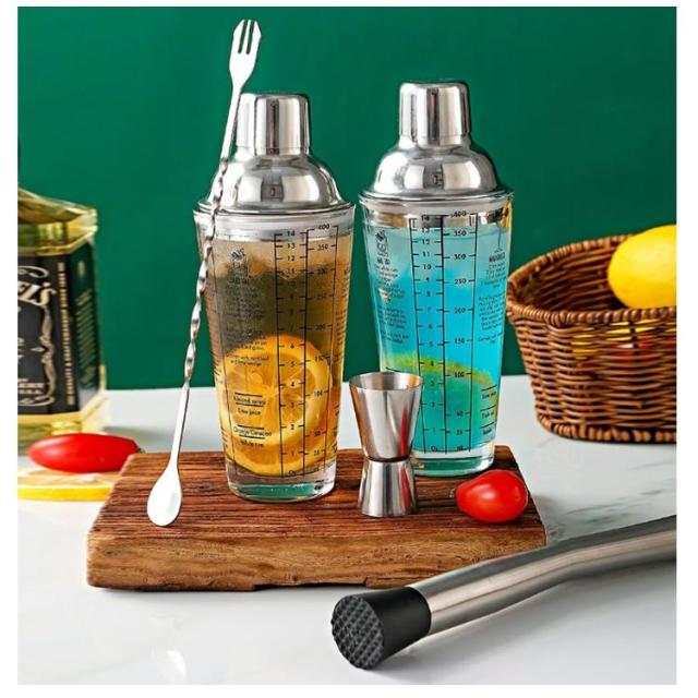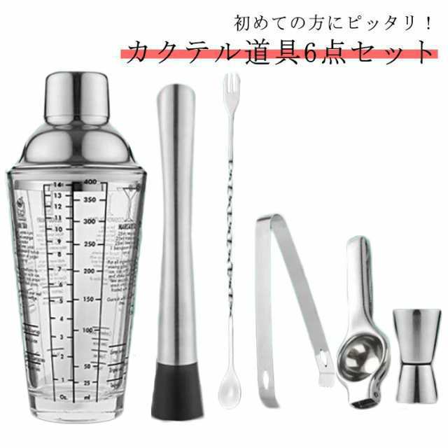 500ML シェイカー メジャーカップ セット セット 6点セット 初心者 お酒 6点セット 400ml 入門 バーテンダー レモン絞り器 ステンレス素材 ガラス カクテル カクテルシェイカー シェイカーセット