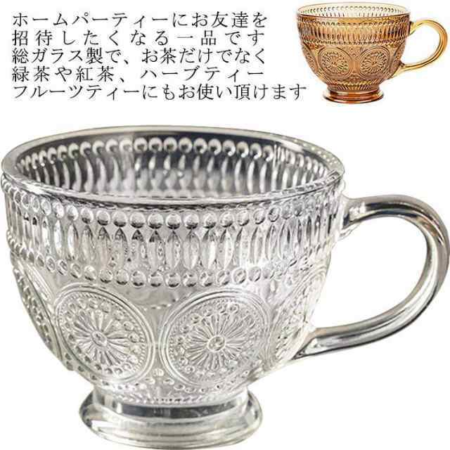 ガラスコップ 湯呑み コーヒーカップ 耐熱マグカップ 耐熱 ガラス カフェマグ マグカップ 花柄 個セット 食洗機対応 クリア 北欧 優雅 取手付き 茶色 華やか 透明 華奢 耐熱ガラス