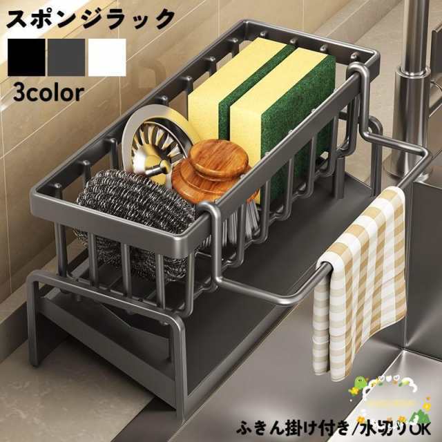 スポンジラック スポンジホルダー スポンジ置き 布巾かけ 台ふきん タオル掛け キッチンラック 収納 流し シンク 洗い場 洗剤 水切り カゴ 台所