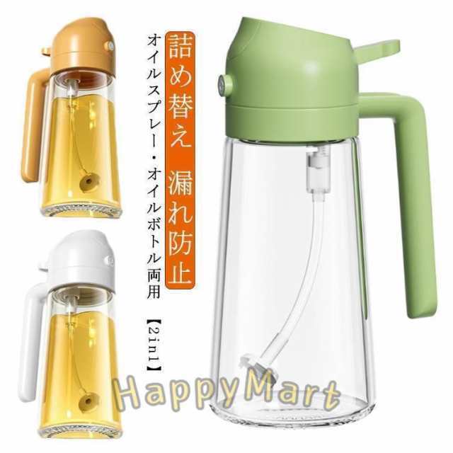 オイルボトル オイルスプレー 両用 2in1 オイル差し オイルポット 霧吹き 油ポット 液だれしない 調味料入れ 調味料ボトル 透明 ガラ