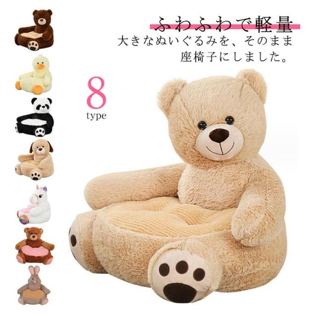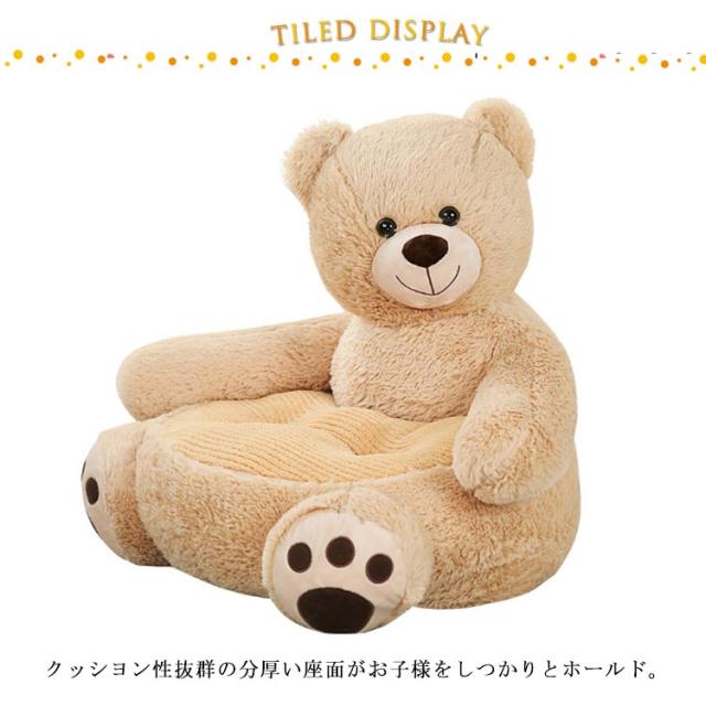 | ふわふわで軽量 大きなぬいぐるみを、そのまま座椅子にしました。 クッシヨン性抜群の分厚い座面がお子様をしつかりとホールド。 | |