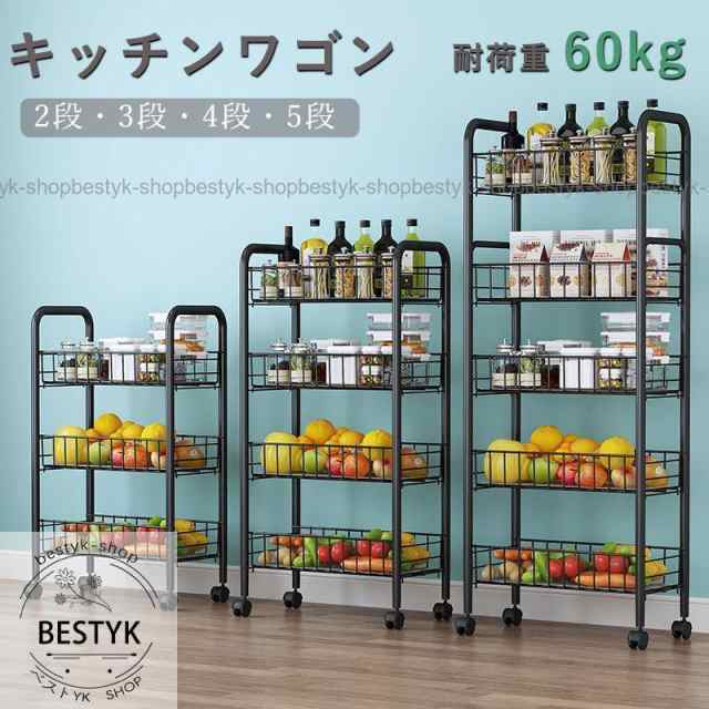 キッチンワゴン ラック 収納カート バスケット キャスター付き ハンドル付き 5段4段3段2段 キッチンカウンター インテリア 収納 小物 雑貨 台所 新生活