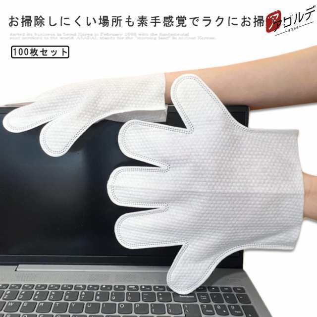 100枚セット 使い捨て手袋 お掃除手袋 5本指タイプ 隙間 掃除 左右兼用 両面使える モップ手袋 汚れ取りワイパー エアコン 細かい掃除 ホコリ 汚れ取り お掃除グローブ 拭き掃除 使い切り フリーサイズ