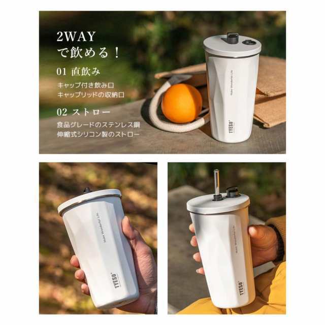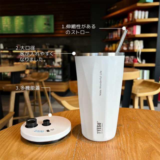 タンブラー ストロー付き 蓋付き 大容量 ステンレスタンブラー 二重構造 真空断熱 保温 保冷 ドライブ コップ コーヒータンブラー マグコップ マグボトル