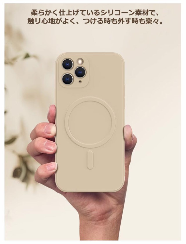 | MagSafe対応シリコンケース マグネット内蔵、ぴったりフィット 汚れにも強いスッと拭いてキレイに! 柔らかく仕上げているシリコーン素材で、触リ心地がよく、つける時も外す時も楽々 | |