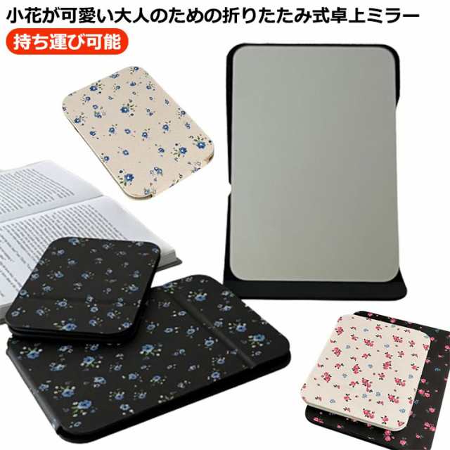 角度調整自在 卓上ミラー 折りたたみミラー 鏡 大きい鏡面 可愛い 小花柄 スタンドミラー 化粧鏡 メイクミラー 卓上鏡 コンパクトミラー 持ち運び鏡 折りたたみ式 ミラー 持ち運び可能 手鏡 かがみ レディース 女性用