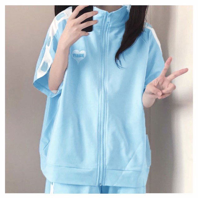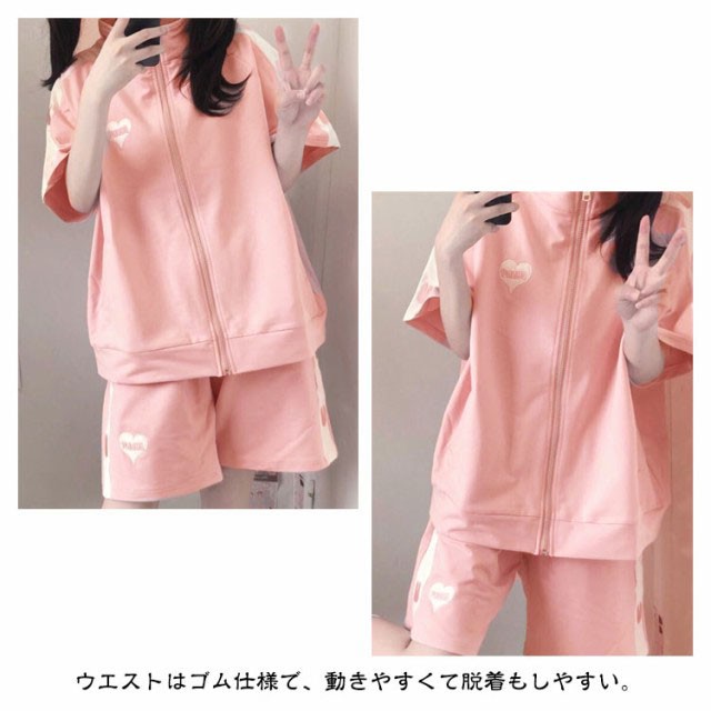 ジャージ 上下セット レディース 2点セット かわいい 春夏 半袖 ゆったり 女子 服 学生 高校生 前開き トップス パーカー ショートパンツ セットアップ 薄手 地雷系 春 秋 夏 可愛い 通学 通勤 衣装 おしゃれ カジュアル ダンス 女装 S-XL