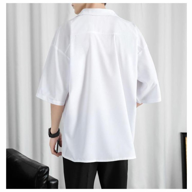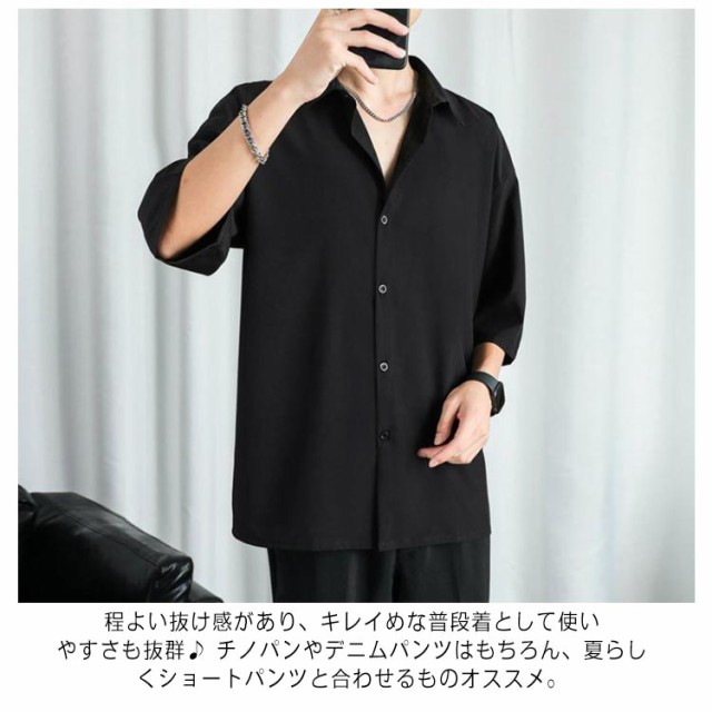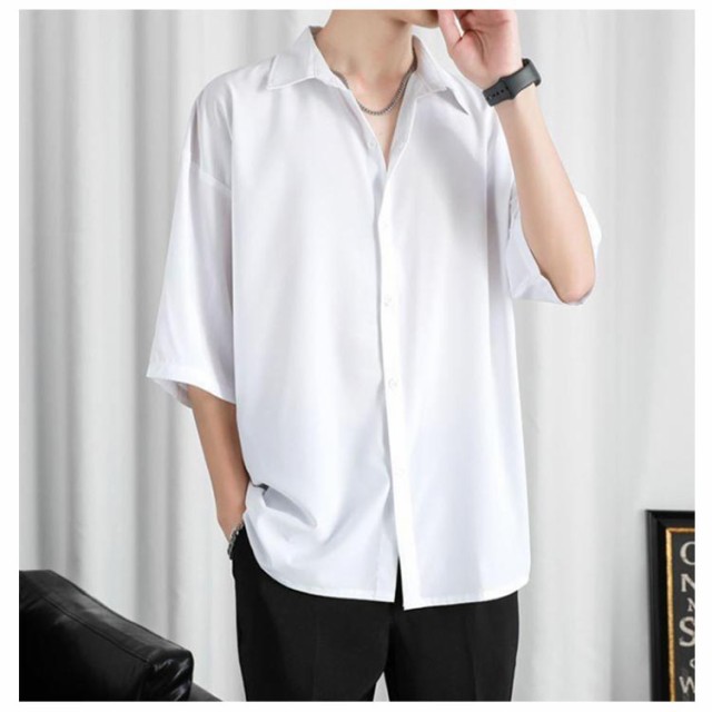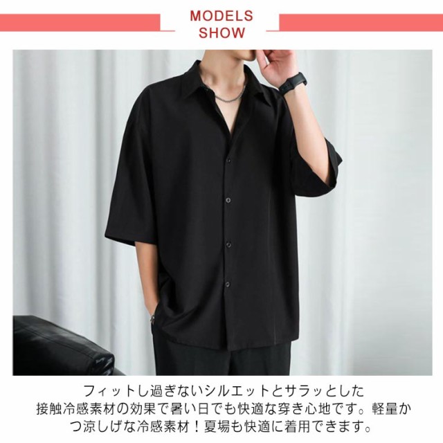 半袖シャツ メンズ シャツ 半袖 涼しい 接触冷感 オーバーサイズ アイスシルクシャツ ドルマン シワにならない ビッグシルエット オーバーサイズ 半袖シャツ ロングシャツ ビッグシャツ 無地 とろみ 送料無料