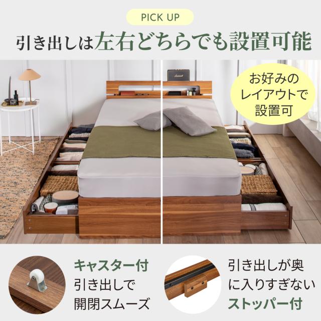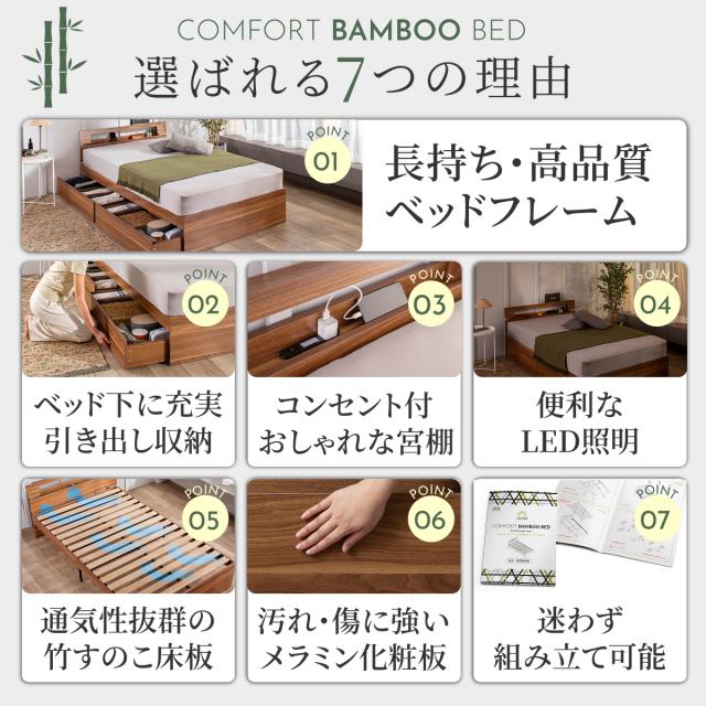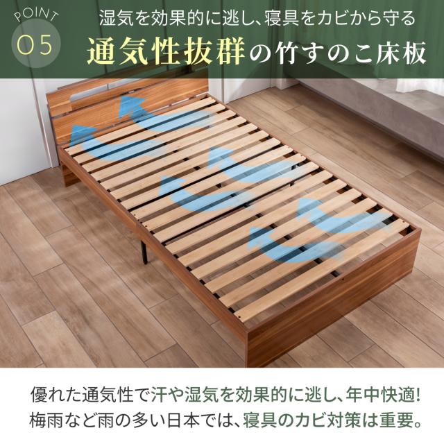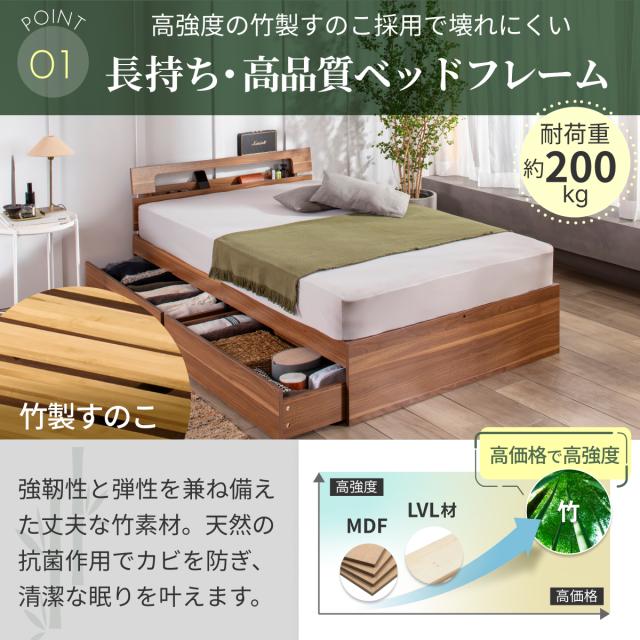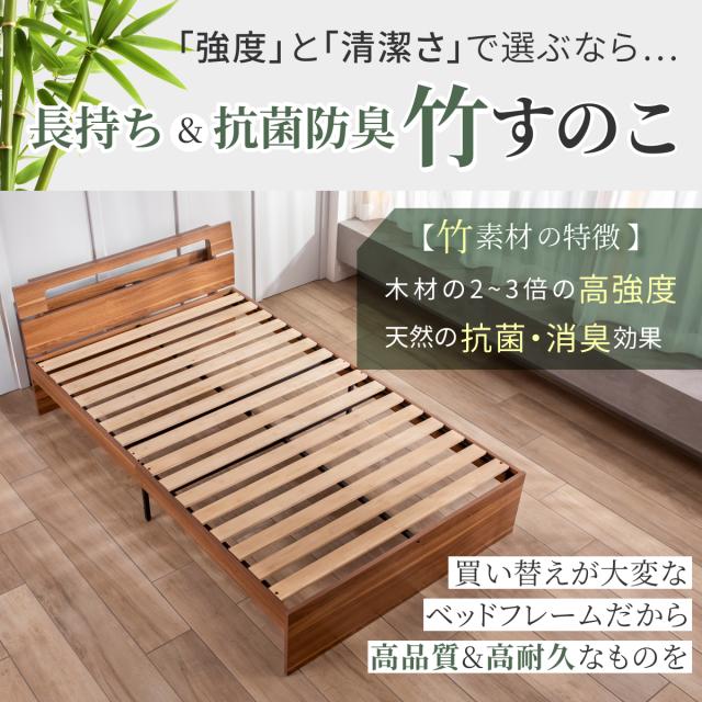 ベッドフレーム シングル すのこ 収納付き ヘッドボード ベッド すのこベッド 引き出し付き 収納付きベッド フレーム 脚付き 竹 ベット フレームのみ コンセント 宮棚 ベッド下収納