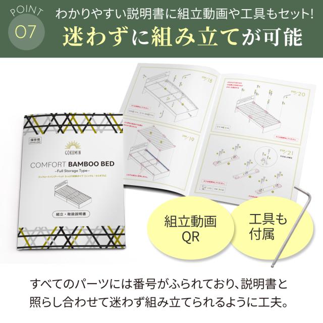 通気性抜群のすのこ構造 × 竹の天然抗菌作用が、湿気・カビ・ダニを寄せつけず、清潔&快適な寝室環境をキープ。