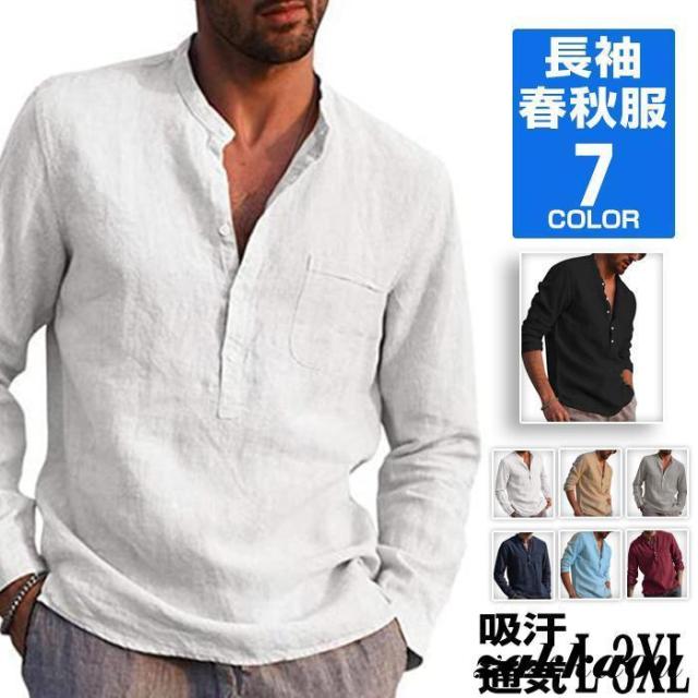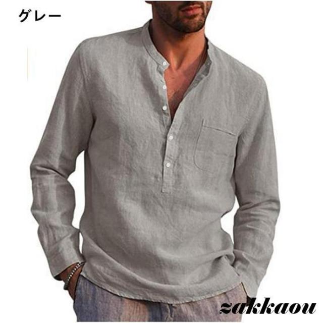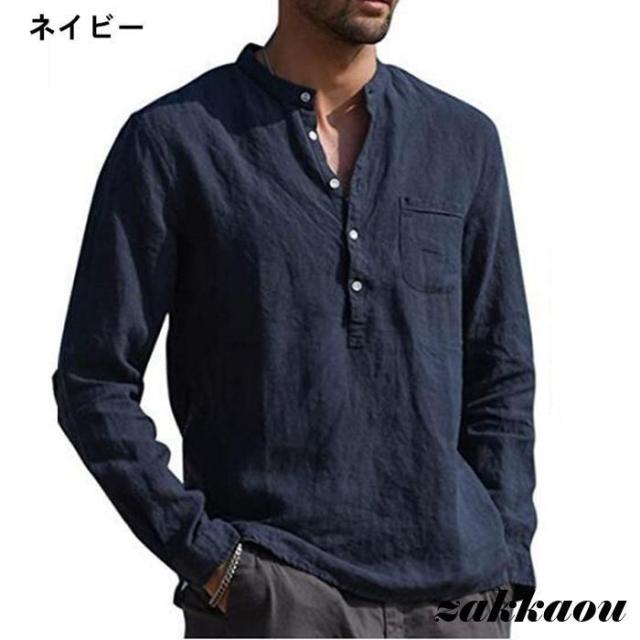 シャツ ヘンリーネック Tシャツ 長袖 メンズ トップス カットソー 吸汗 通気性 軽量 快適 薄手 インナー 涼しい 肌触り ルームウェア 部屋着