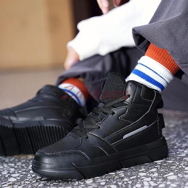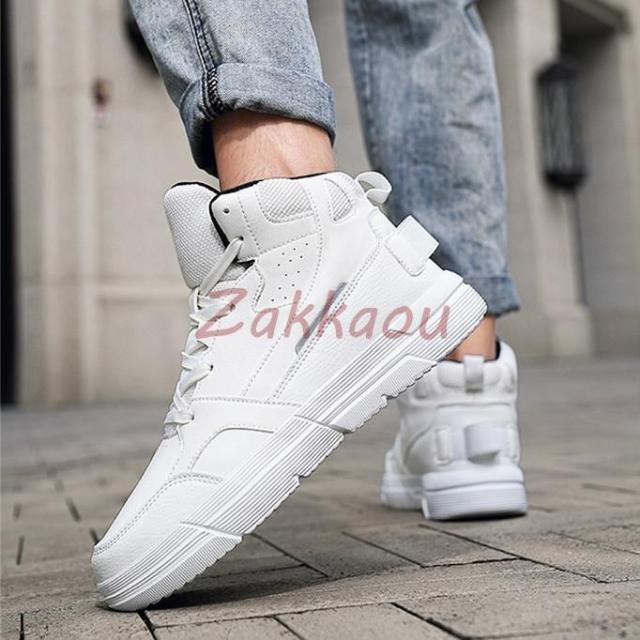 スニーカー メンズ ハイカット スニーカー 靴 白 黒 3E 幅広 シンプル おしゃれカジュアル スポーツシューズ 通学 通勤 防滑 軽い ウオーキングシューズ男女兼用