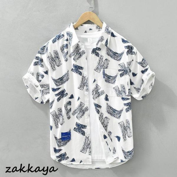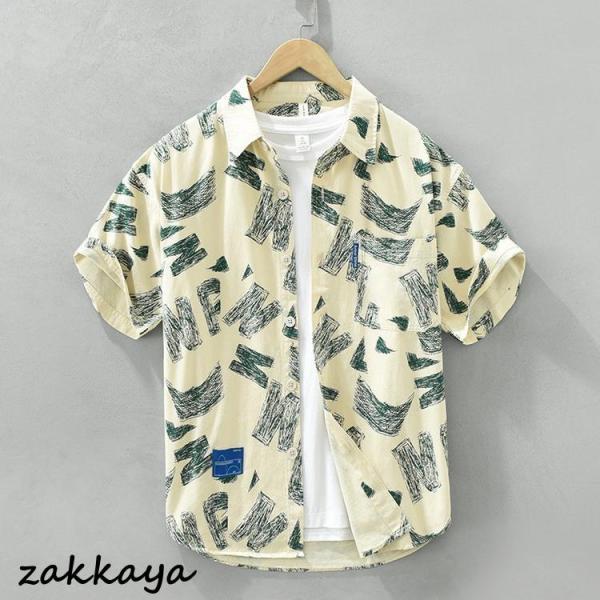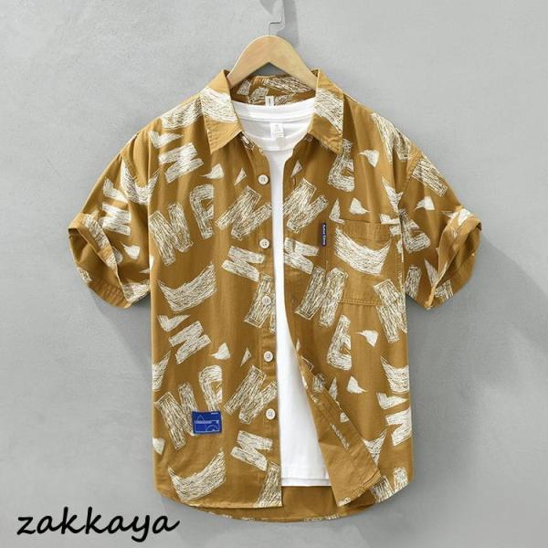 総柄シャツ メンズ シャツ カジュアルシャツ 半袖シャツ トップス コットン 夏服 ファッション