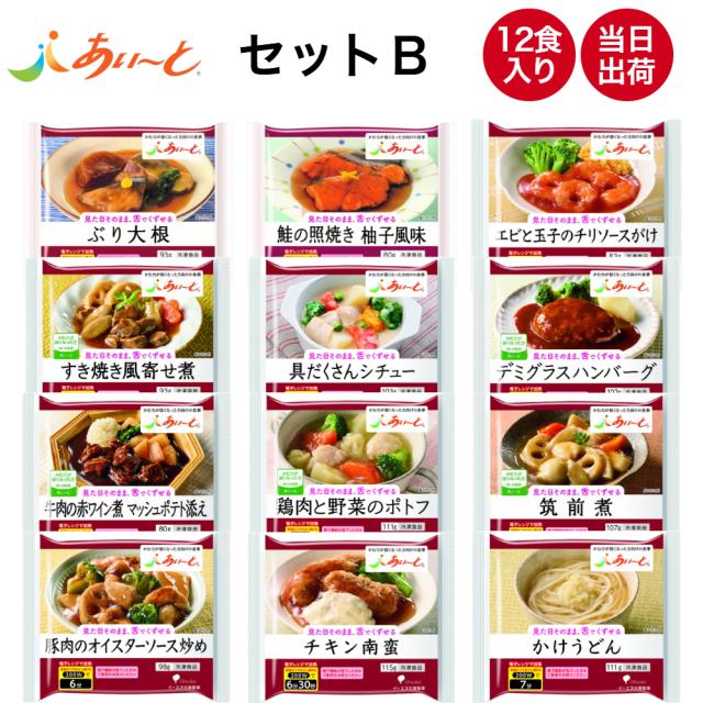 【介護食】冷凍 あいーと セットB 12食入り 舌でつぶせる 当日発送 冷凍弁当 冷凍食品 ムース食 ミキサー食 刻み食 ペースト食 惣菜 送料無料