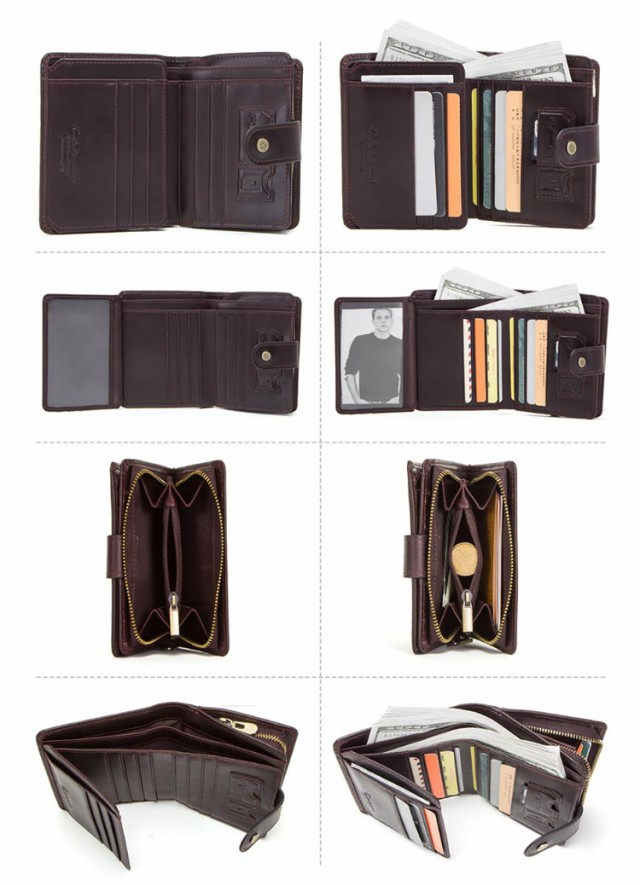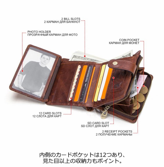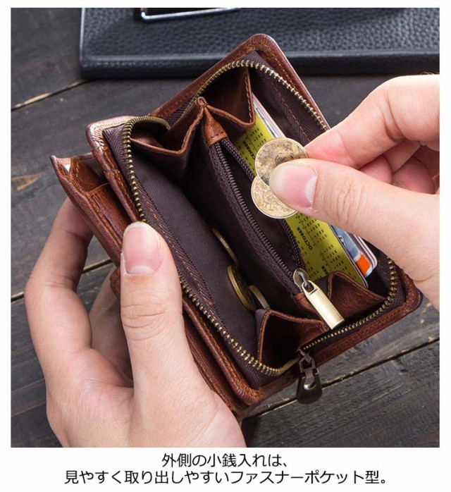 | 使うほどになじむ本革二つ折り財布。【カードポケット12箇所】 表、内側両方に贅沢に牛革を使用しており、肉厚の牛革は長くお使いいただいてもヘタることなく、使い込むほどに味わい深くなり、手に馴染んできます。 コンパクト設計に見合わない収納力、スキミング防止機能などの機能面の充実と、ミニ財布の最適解を目指した逸品です。 内側のカードポケットは12つあり、見た目以上の収納力もポイント。 外側の小銭入れは、見やすく取り出しやすいファスナーポケット型。 お札も硬貨もカードもしっかりと入る大容量なのに使いやすいサイズが嬉しい2つ折り財布です。 | |