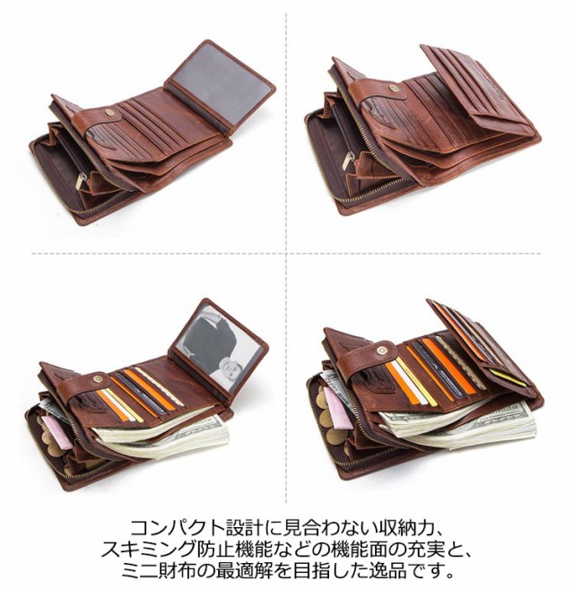 財布 メンズ 二つ折り ミニ財布 ミニウォレット カード入れ 小銭入れ 札入れ 二つ折り財布 お札折らない 使いやすい カードたくさん入る スキミング防止 小さい財布 コンパクト ボタン留め 大人 40代 50代 60代 レトロ ビジネス フォーマル 【送無】