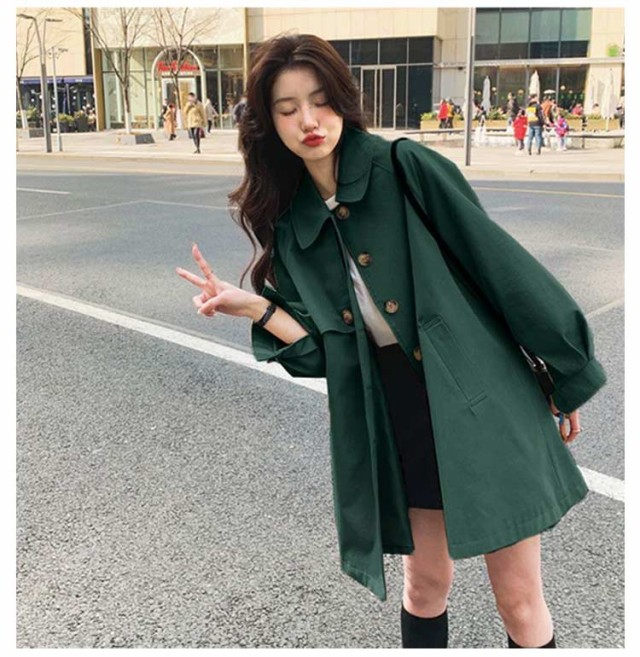 春コート 春 裏地付 パフスリーブ トレンチコート 秋 スプリングコート ステンカラーコート ミドル丈 コート ゆったり 韓国風 ロング丈 薄手 トレンチコート アウター 羽織り トップス カジュアル おしゃれ かわいい 送料無料 大きいサイズ
