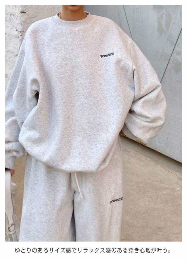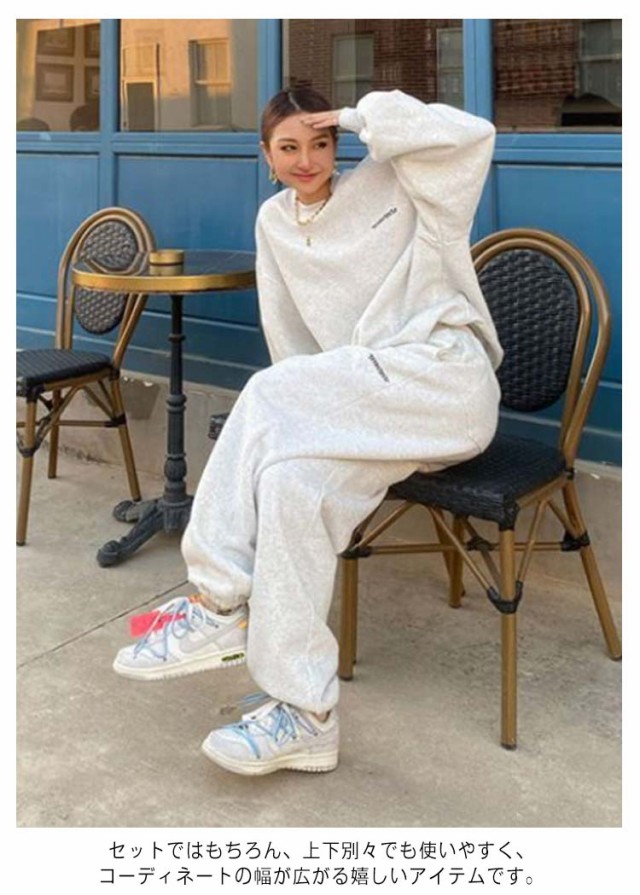 | トレーナー・スウェットパンツ上下セット。 ゆとりのあるサイズ感でリラックス感のある穿き心地が叶う。 ルームウェアやパジャマとしてはもちろん、近所へのお散歩やお出かけにも着用いただけるワンマイルウェアとしても活躍してくれます! セットではもちろん、上下別々でも使いやすく、コーディネートの幅が広がる嬉しいアイテムです。 | |