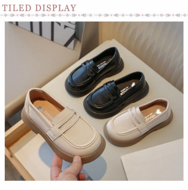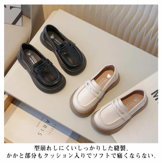 女子 小学生 ジュニア キッズ ローファー スクール 入学式 学生 靴 中学生 幅広 きれいめ 合成皮革 革靴 学生靴 オフホワイト 通学 16.5-22cm フォーマルシューズ 発表会 ローファー ウエディング 七五三 軽量