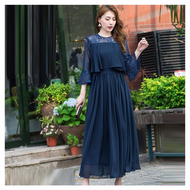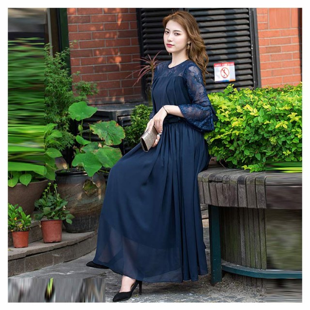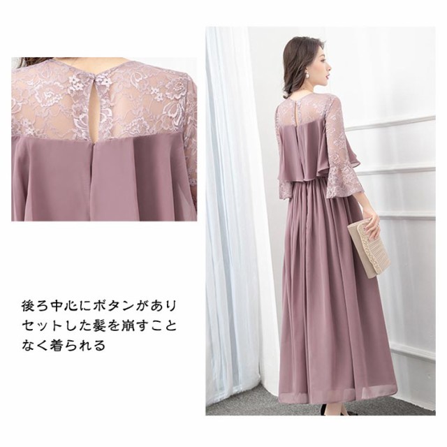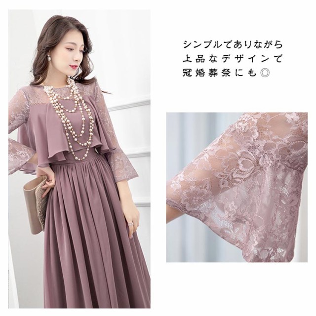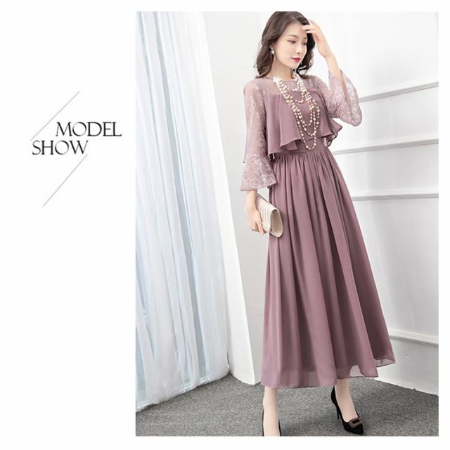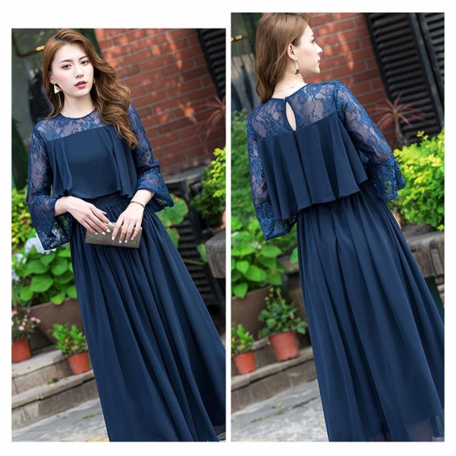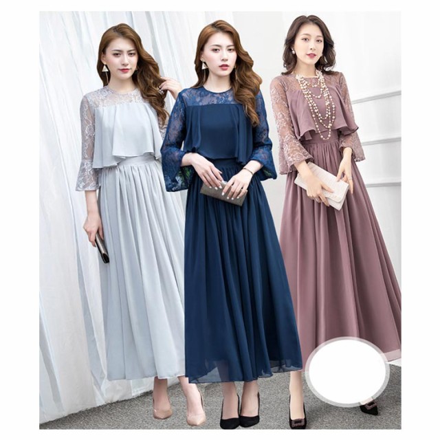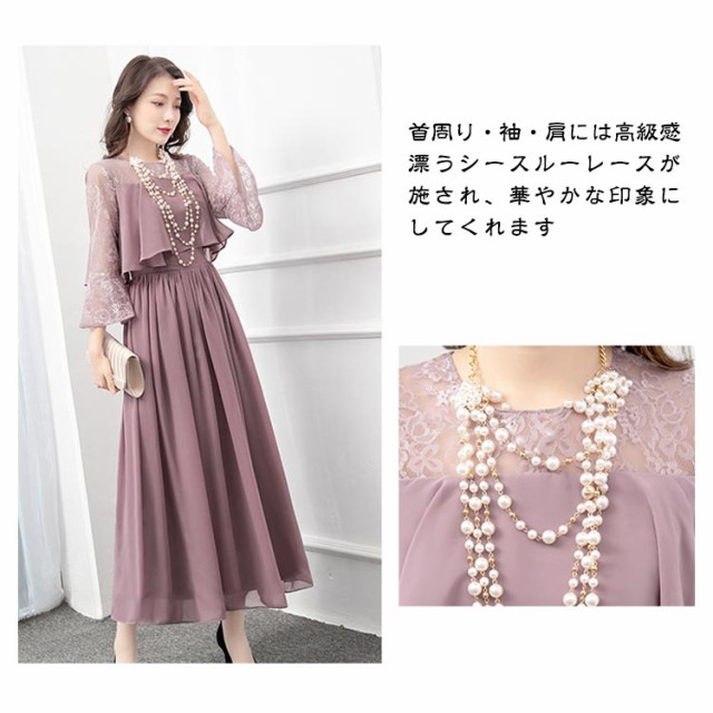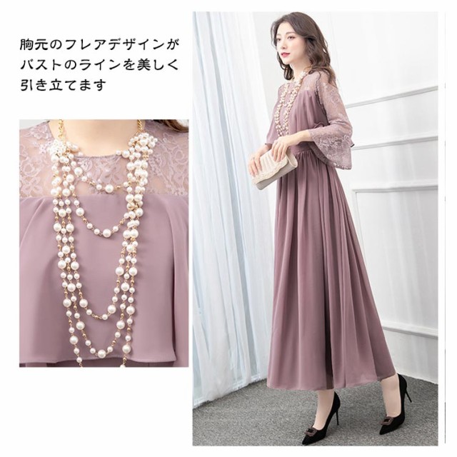 結婚式 ワンピース ロング丈 パーティードレス フォーマルドレス 袖あり 着痩せ 体型カバー レース 二の腕カバー ロングドレス 成人式 同窓会 お呼ばれ ミセス 20代 30代 40代 50代 母親 冬 秋 春 秋冬