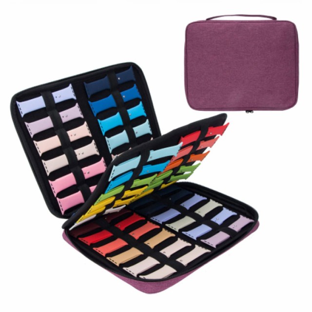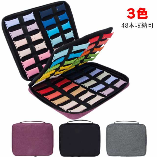 【48本収納可】apple watch バンド 収納 ケース ナイロン 2層 大容量 ダブルファスナー 内貼りマイクロファイバー素材 スマートウォッチ 時計 収納ケース