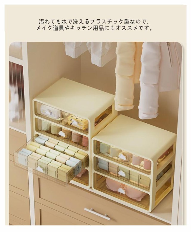 | 下着や衣類の収納に便利な収納ボックス 整理整頓が出来るとても便利なボックスです。 サイズがバラバラでダンスの中で散らかりがちだった様々なアイテムをしっかり収納! 収納物が見えやすく、使いたいものをすぐに取り出すことができます。 汚れても水で洗えるプラスチック製なので、メイク道具やキッチン用品にもオススメです。 | |
