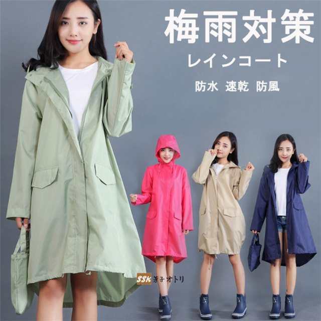 レインコート レディース レインウェア かっぱ 雨具 Aライン ロング丈 自転車 通勤 通学 おしゃれ 可愛い