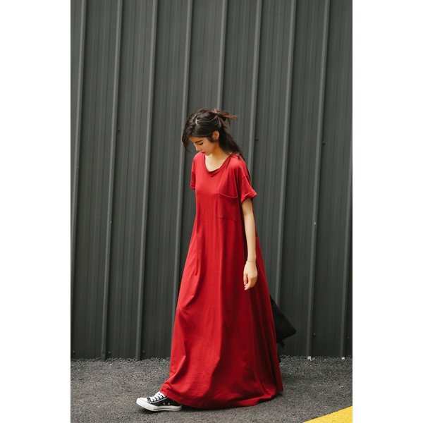 ワンピース マキシワンピース レディース 40代 きれいめワンピース 夏 赤ワンピース オシャレ Tシャツ 半袖 大きいサイズ