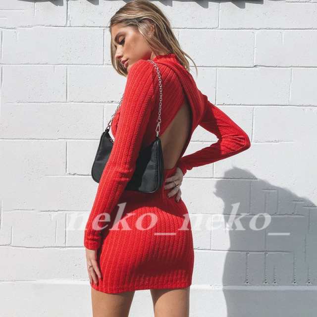 バックレス ボディコンワンピース レディース 欧米風 セクシー ミニ丈ワンピース タイトワンピース インナー ヒップパック スリム 着痩せ 30代40代 女性 秋冬