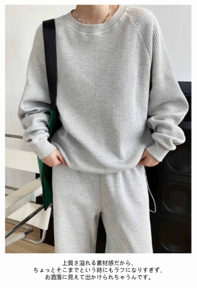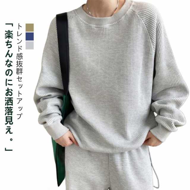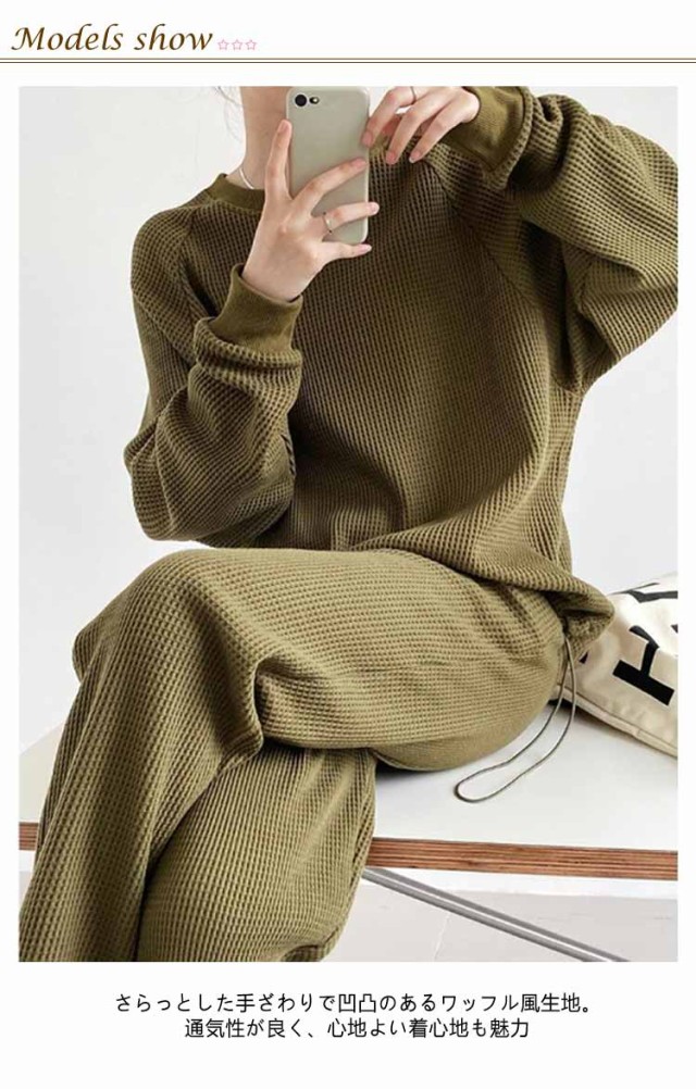 ワッフル 春 レディース セットアップ Tシャツ 冬 スウェット 秋 ワッフル 長袖 ワッフル編み 上下セット ロングパンツ 2点セット ルームウェア ワンマイルウェア 無地 シンプル カジュアル ゆったり 大きいサイズ 柔らかい 通気性 楽ちん スポーツ お出かけ