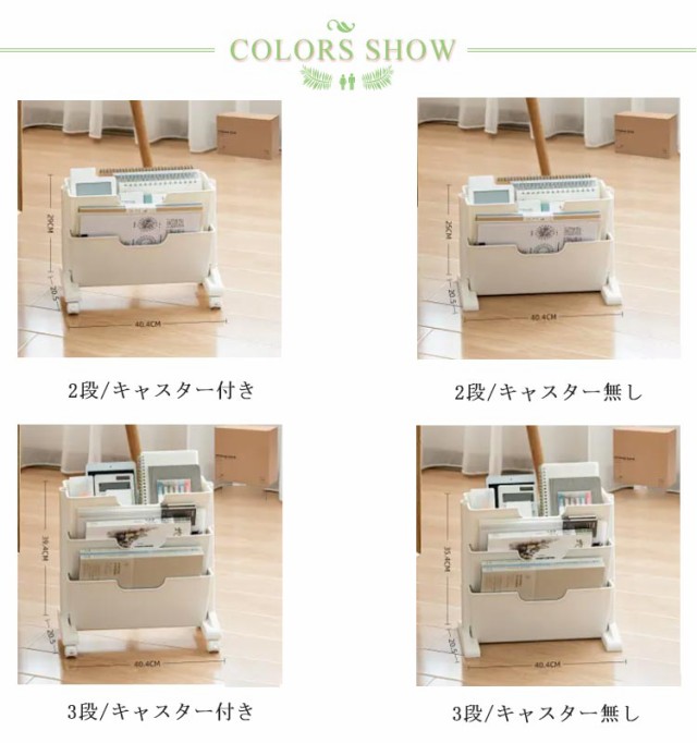 | サイズ | 3段/キャスター付き 3段/キャスター無し 2段/キャスター付き 2段/キャスター無し |