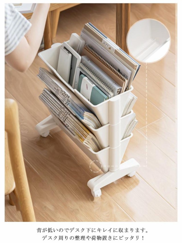 テーブルワゴン ミニ デスク下収納 デスクワゴン スリム サイドワゴン キャスター付き 2段 3段 棚 収納ラック 多目的 サイドラック 薄型 隙間収納 本棚 A4ファイルラック 漫画 雑誌 収納 テレワーク オフィス
