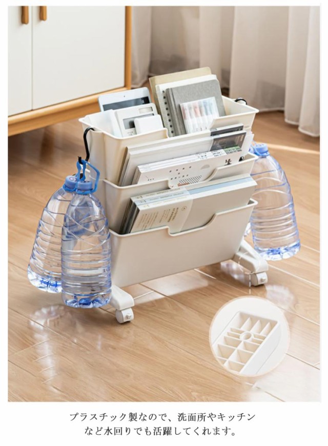 | テーブル下にも収まるミニサイズ!様々な場所で使えるテーブルワゴン。 デスク周りの整理整頓やお子様のランドセルラックとしてもちょうどいいサイズ。 背が低いのでデスク下にキレイに収まります。デスク周りの整理や荷物置きにピッタリ! 整理整頓することでストレスを軽減し、仕事や勉強に取り組む意欲が高まります。 底面キャスター付きなので、移動もラクラク。※キャスター無しタイプもあります。 プラスチック製なので、洗面所やキッチンなど水回りでも活躍してくれます。 キャスター付でお手入れしやすく長くお使いいただけるアイテムです♪ | |