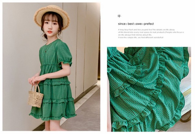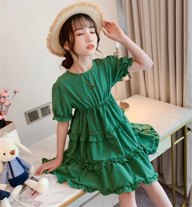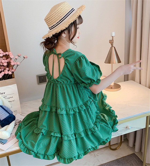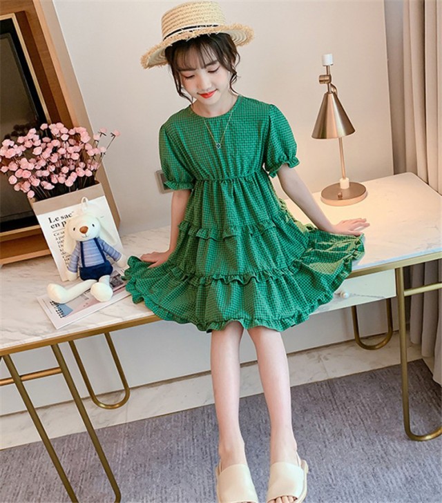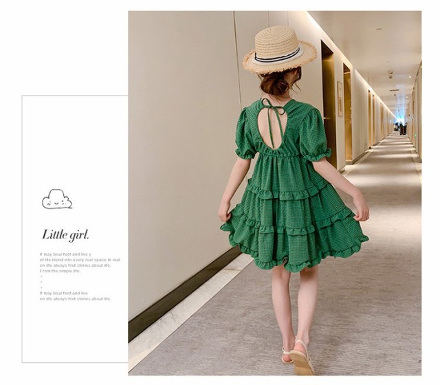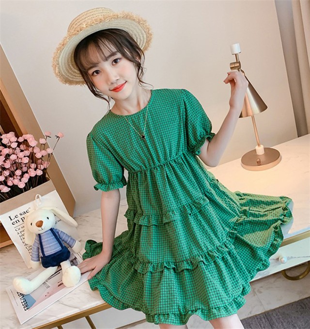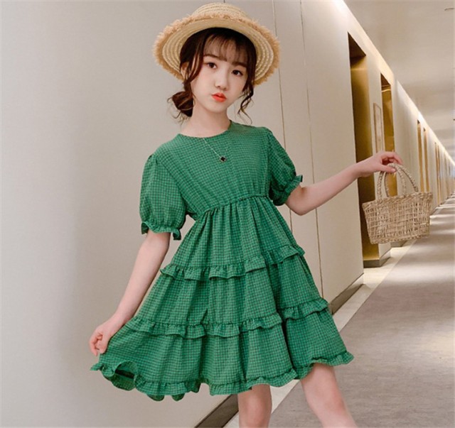 ワンピース キッズ 子供服 女の子 夏 キッズワンピース 半袖ワンピース 無地 フリル 子供ドレス ジュニア お姫様 おしゃれ 可愛い カジュアル 新品 150cm 160cm