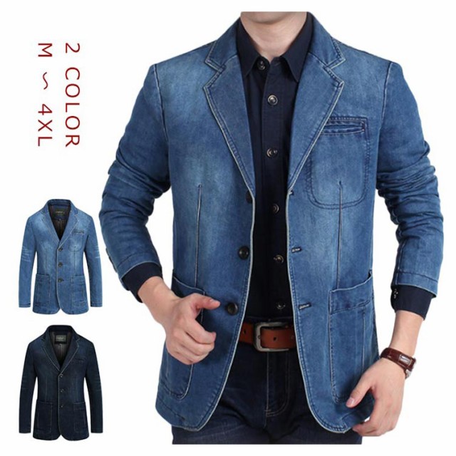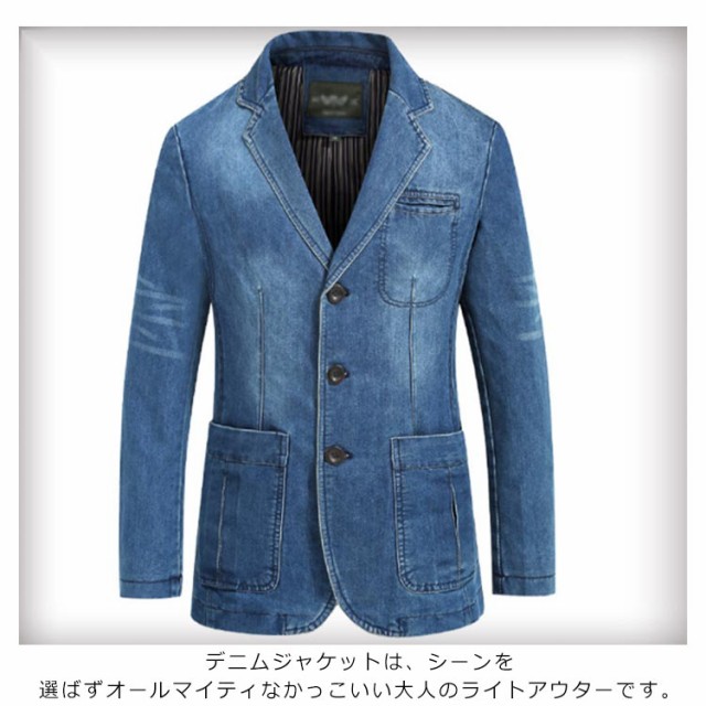 デニム テーラードジャケット デニム スーツ メンズ デニムジャケット カットデニム ストレッチ スリム メンズ アウター トップス デニムコート 春 夏 秋 スプリング服 ビジネス カジュアル きれいめ Gジャン 長袖 スーツ