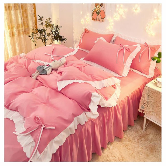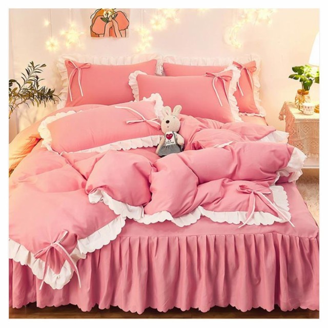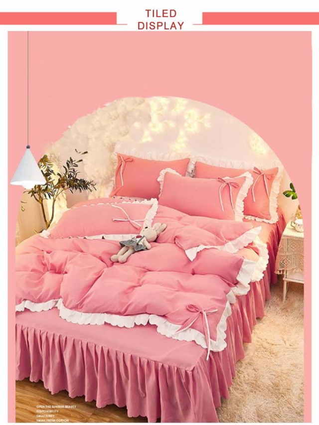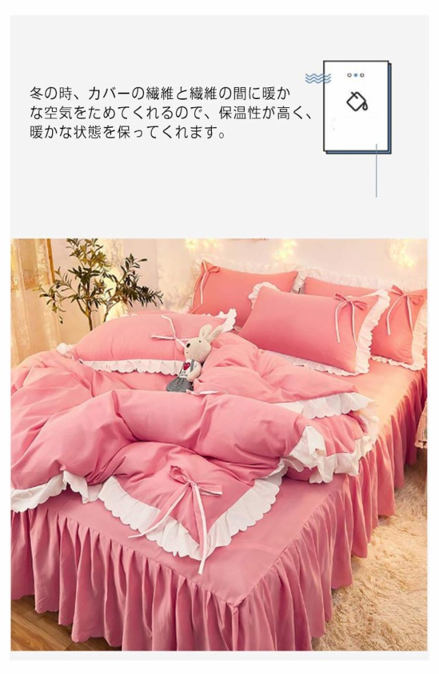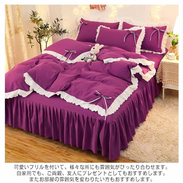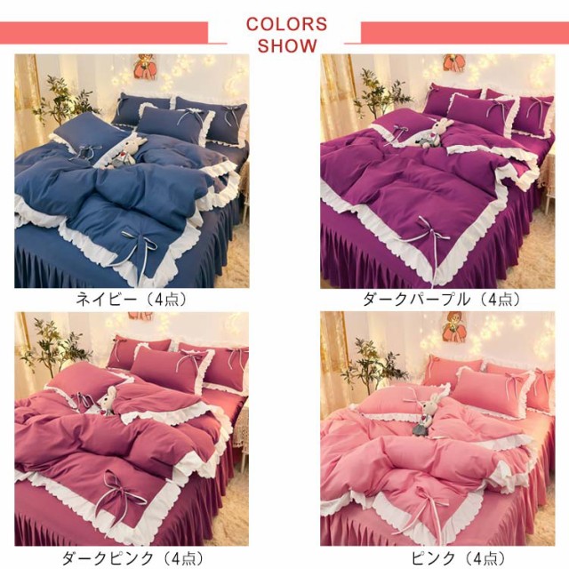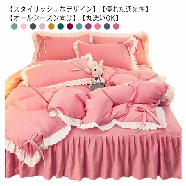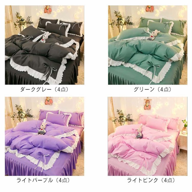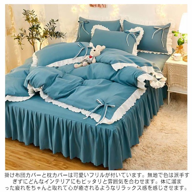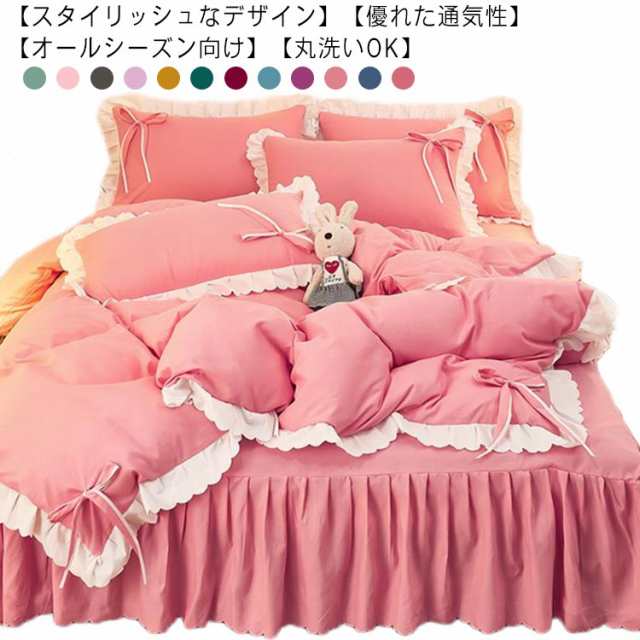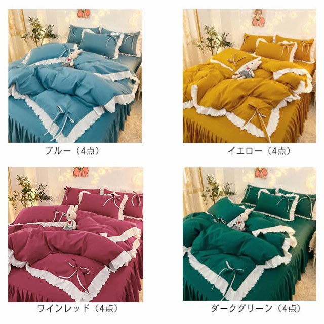 布団カバー セット フリル ベッドスカート セット シングル セミダブル ダブル 4点セット 布団カバー ベッドスカート 枕カバー カバーシーツセット 柔らか 無地 寝心地 肌触り 姫風 可愛い 丸洗い 掛け布団カバー まくらカバー 寝具カバーセット 送料無料
