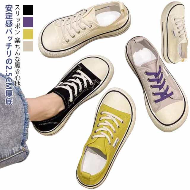 スリッポン 厚底 スニーカー レディース スリッポン キャンバススニーカー フラットシューズ キャンバスシューズ ローカット 楽ちん 婦人靴 ズック靴 蒸れない ラウンドトゥ 柔軟性 滑り止め 外反母趾 カジュアルシューズ ベージュ ブラック パープル